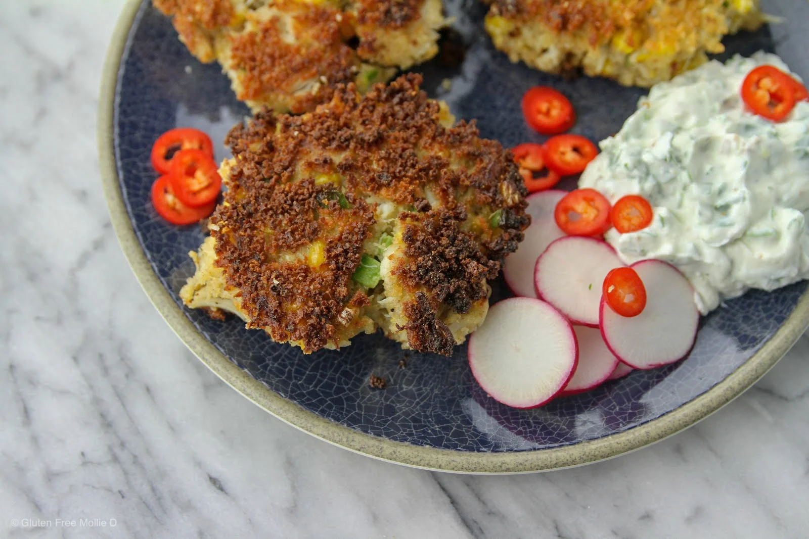 The coriander yogurt (YUM) was simply the perfect dipping sauce for these cakes and you didn’t even need too much to add that burst of flavor amidst the crab, corn, and Panko. Yes! The Panko. Frying crab cakes covered in Panko is the best and I’d say it’s way better than other breadcrumb options for this use. I suppose I’m a little biased. 🤷♀️