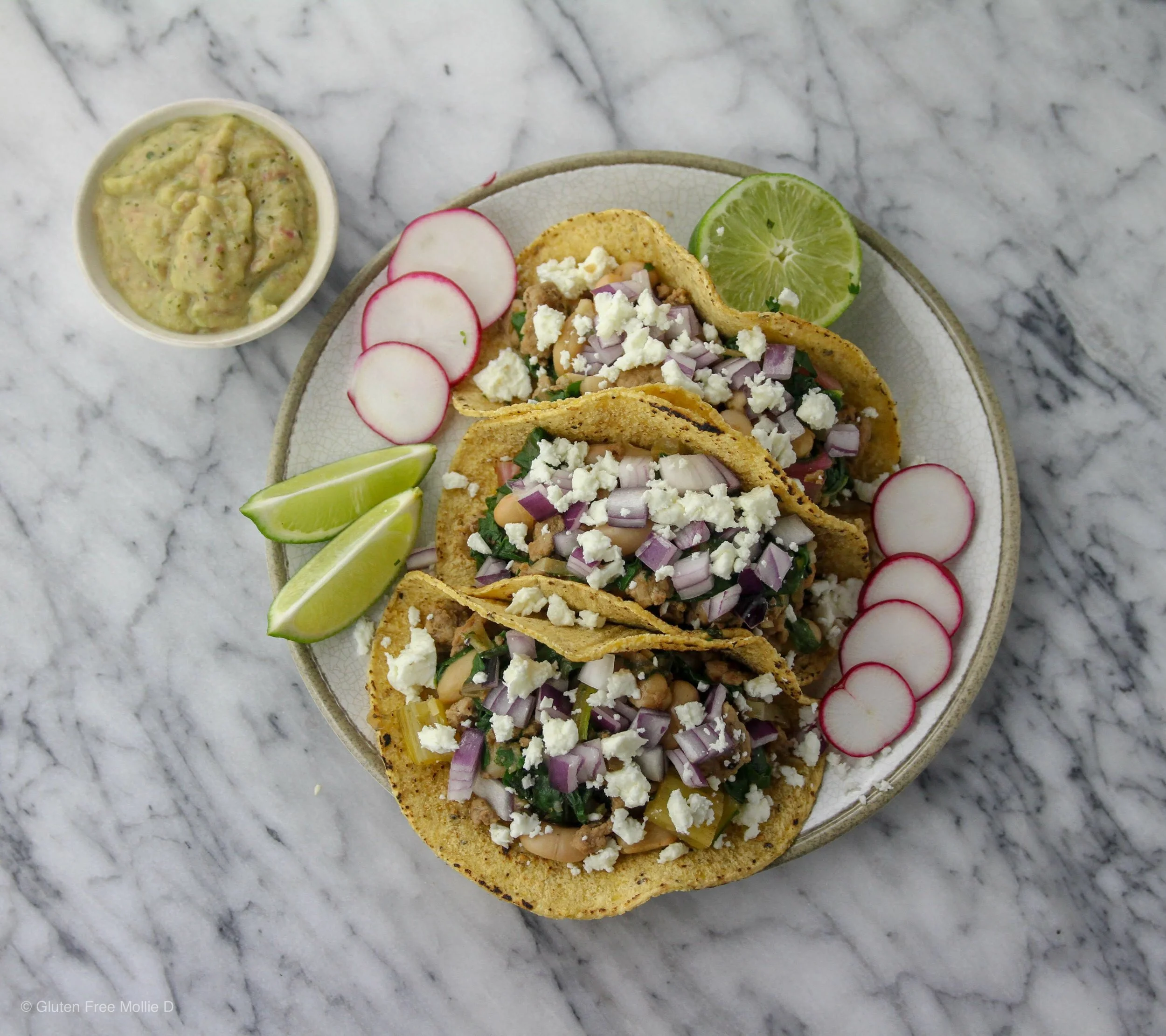 GFMD: Naturally gluten free with corn tortillas! And it would be vegan if you leave out the ground turkey. Again, the recipe did not include meat, but we chose to add it.